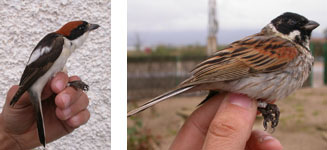 Subespècies d'interès al Delta de l'Ebre 23/4/2008 El passat 20 d'abril, durant una de les sessions de camp del curs sobre migració que va organitzar l'Associació Ornitològica de les Terres de l'Ebre (www.picampall.org), es va capturar un mascle de capsigrany balear Lanius senator badius, que se suma a les dues captures d'aquesta subespècie que s'han produït enguany al Delta del Llobregat. També cal destacar, durant les mateixes sessions, l'anellament de dos "picampalls", Emberiza schoeniclus whiterbyi. Recordem que la subespècie whiterbyi del repicatalons està catalogada en perill d'extinció. Observadors: Sergi Sales, Frederic Sánchez, Núria Rodríguez i alumnes del curs sobre migració.